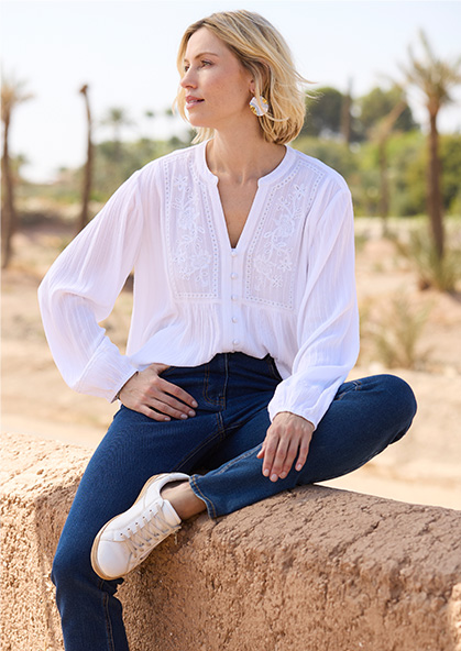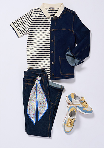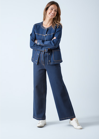 Multipliez les nuances de denim et de bleu pour une silhouette, moderne, sans effort.