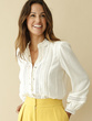 Esprit romantique pour cette blouse avec son col volanté, ses plis nervurés et ses détails macramé...
