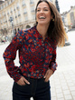 Chemisier en crêpe col montant volanté
