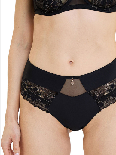Culotte sexy dentelle et tulle - Sans Complexe - Noir & lurex cuivré