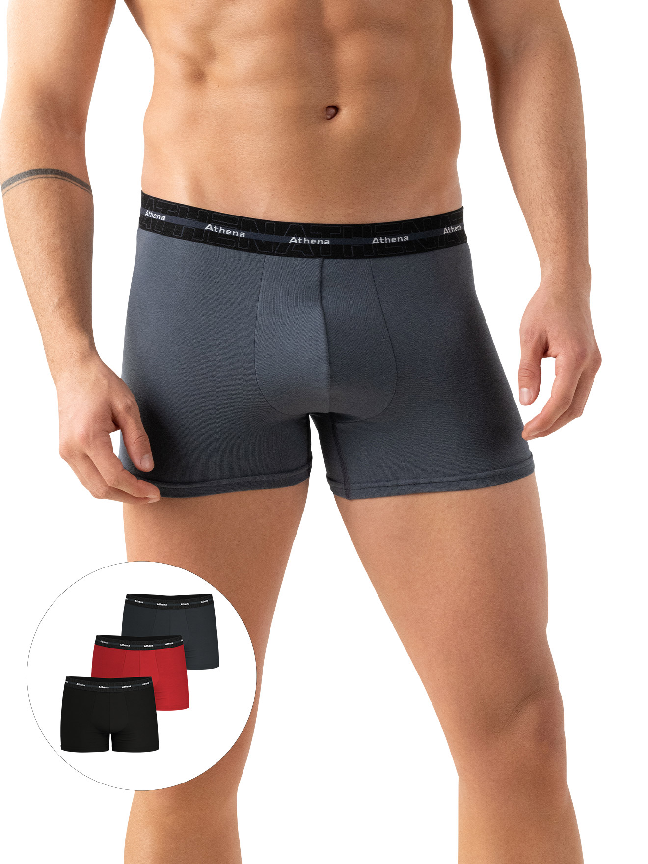 Lot de 3 boxers Coton - Athéna - Noir/rouge/anthracite