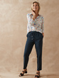 Confort d'un tissu enrichi d'élasthanne pour la liberté de mouvements et d'une ceinture élastiquée s'adaptant souplement à la taille pour ce pantalon 7/8ème...