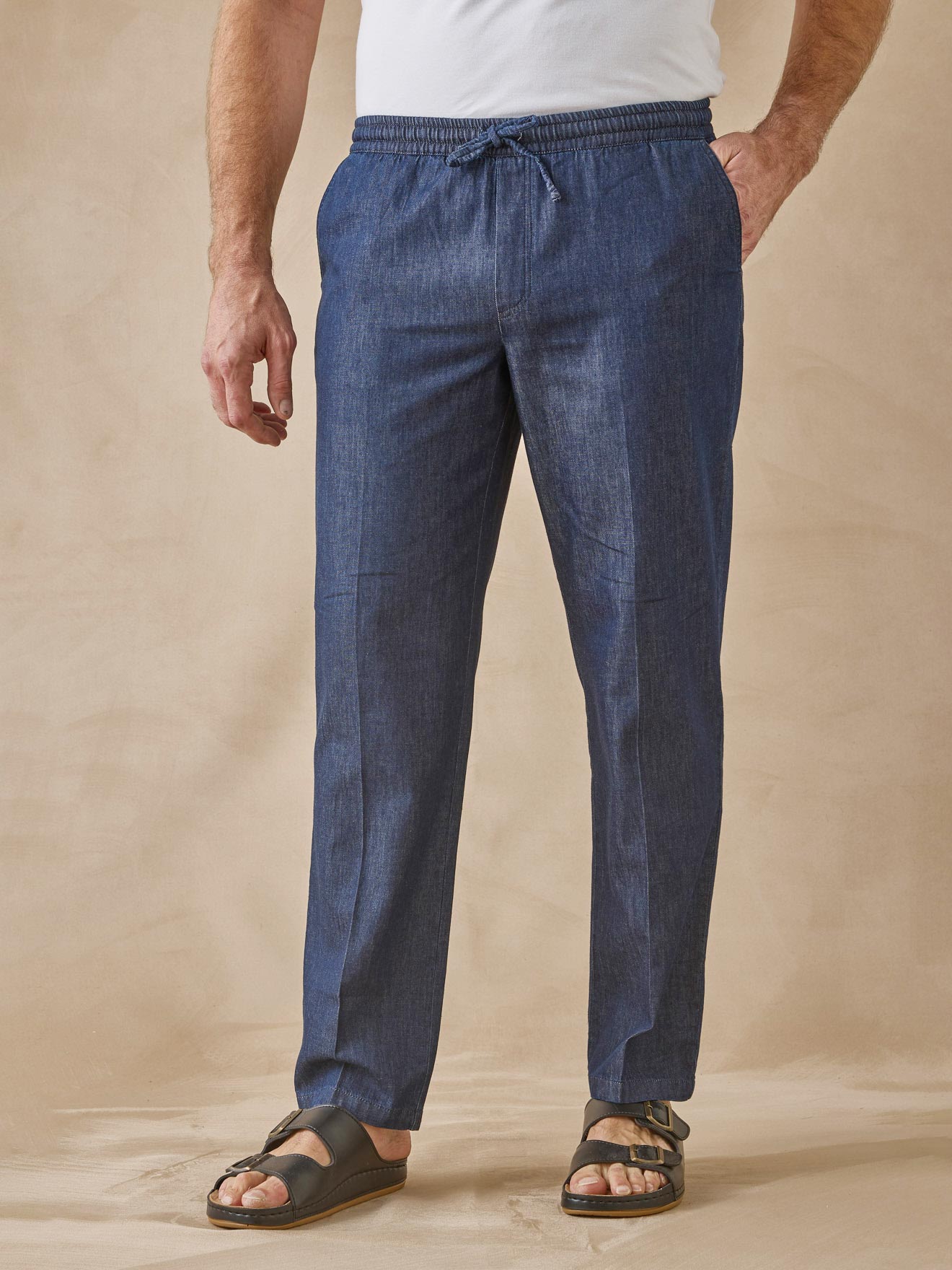 Pantalon élastiqué en denim léger