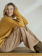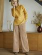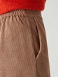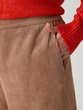 Le pantalon en velours côtelé adopte un volume plus large, avec un bas évasé...