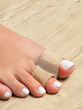 Pour mesurer la largeur de votre pied, posez le mètre ruban à l’endroit le plus large de votre pied (situé généralementen dessous du petit orteil et de l’os du gros orteil)