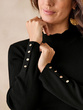 Ce pull col montant est féminisé par de jolies finitions écailles et de petits boutons au bas des manches : une valeur sûre du dressing...