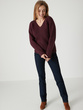 Jeux de points fantaisie et d'ajourés pour ce pull bordeaux qui réchauffe avec style votre look...