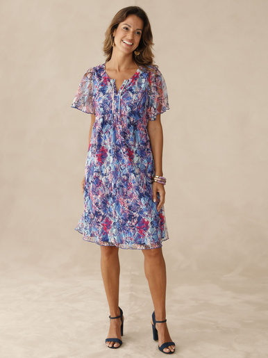Originalité de la dentelle imprimée et féminité des manches volantées pour cette robe...