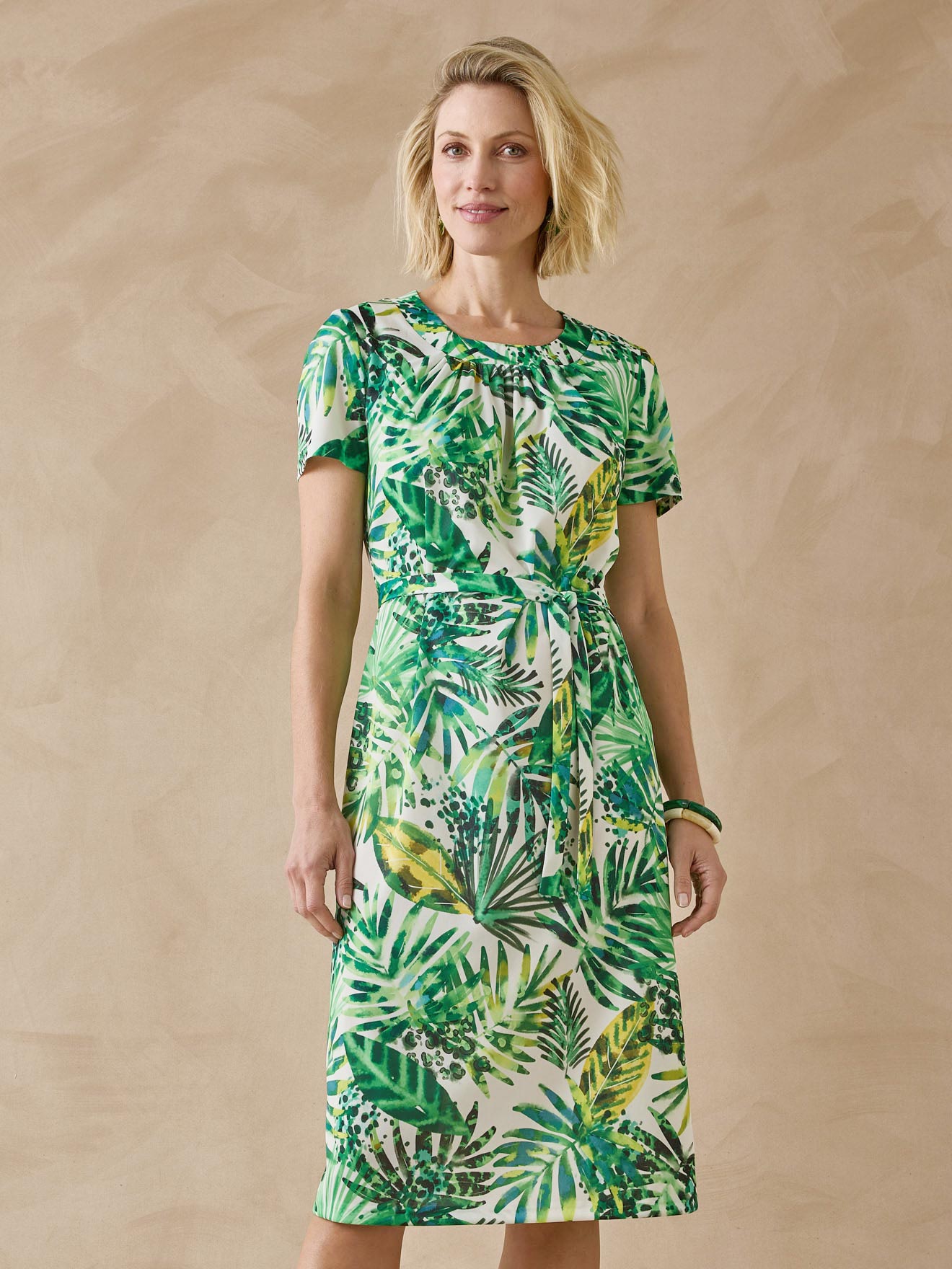 Tonalités de vert très fraîches pour cette robe en maille confortable et agréablement fluide...