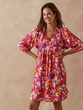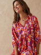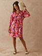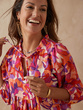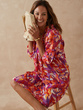 Association du rouge et du violet : le combo gagnant pour l'imprimé de cette robe col volanté qui met du pep's dans la saison !   - Encolure tunisienne avec petit volant et jour échelle -...