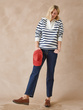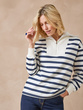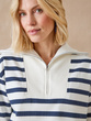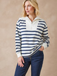 Le sweat-shirt col montant zippé prend un air joli air marin avec ses rayures...
