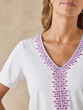 Incontournable du dressing, le tee-shirt blanc se pare de jolies broderies contrastantes qui font leur petit effet...