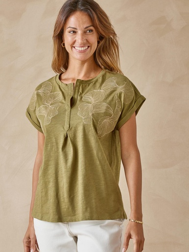 Tee-shirt brodé encolure tunisienne
