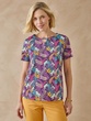 La fantaisie de ce t-shirt coton s'exprime au travers d'une jolie encolure, féminisée par une petite découpe V et par un imprimé au motif "léopards et feuillages" pile dans la tendance !   -...